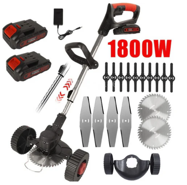 An all-in-one cordless push lawn mower, trimmer and edger. Easily converts from weed eater to wheeled Lawn Mower. With a wheel save weeding job as easy as walking, improve work efficiency and save time. Make your weed eater the envy of the neighborhood.